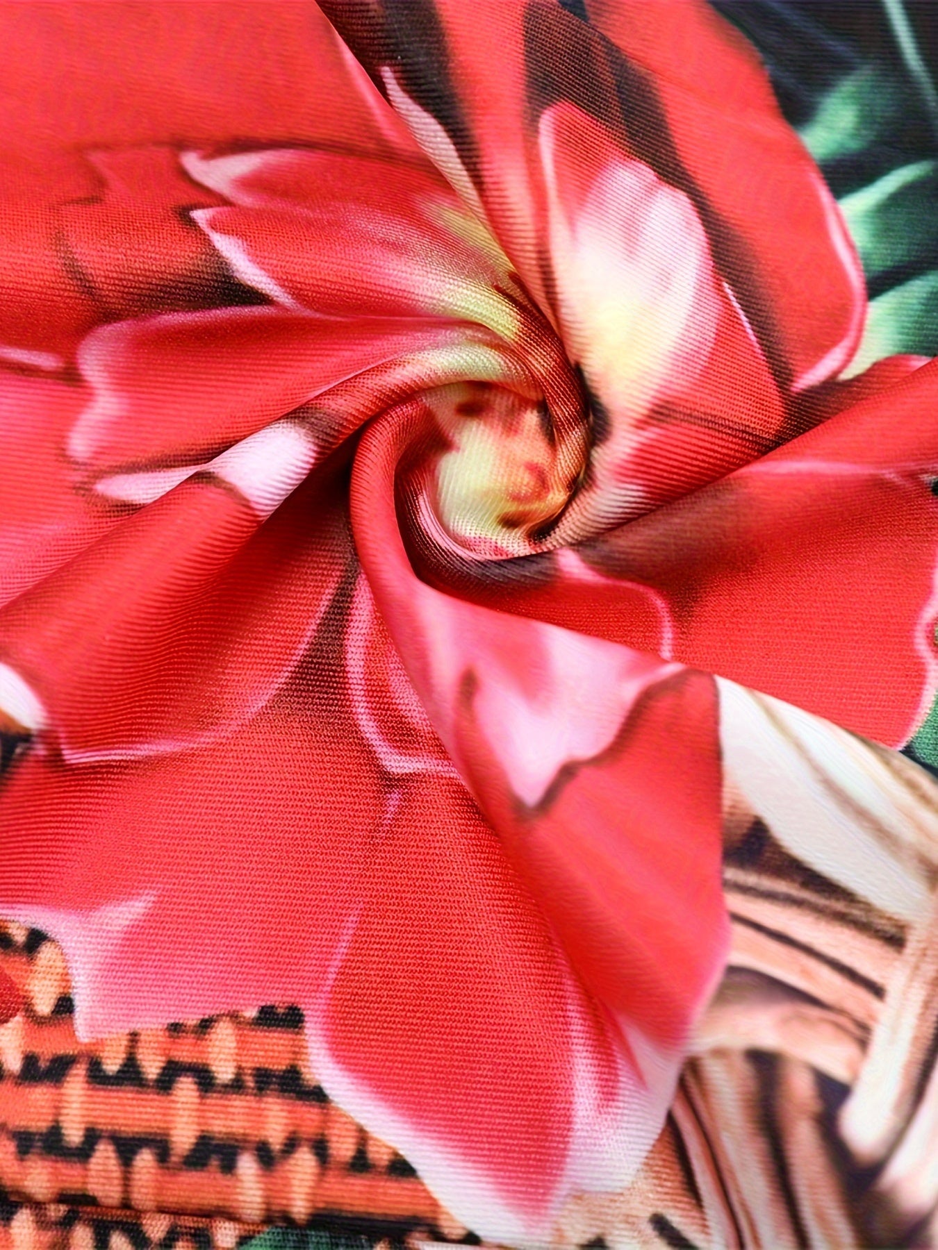 Boho Floral Print Two-piece Set, Vacation Off Shoulder Twist Crop Top & Split High Waist Skirt Outfits, Women's Clothing