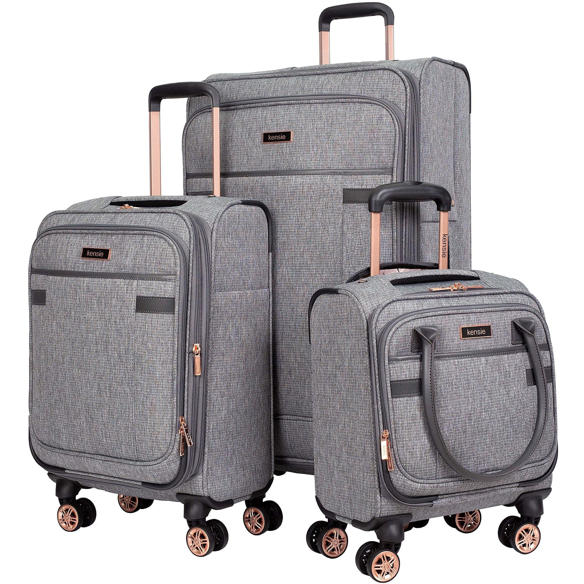 kensie Women's Hudson Softside Spinner Luggage, Heather Gray, 3-Piece Set (16/20/28)