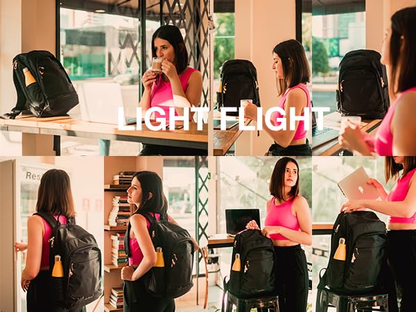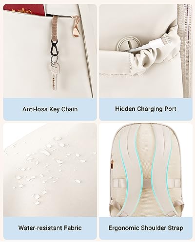 LIGHT FLIGHT Travel Laptop Backpack for Women, 15.6 Inch Anti Theft Backpack with USB Charging Hole, Water Resistant College Bookbag, Large Capacity Black Computer Backpacks for Work, Beige